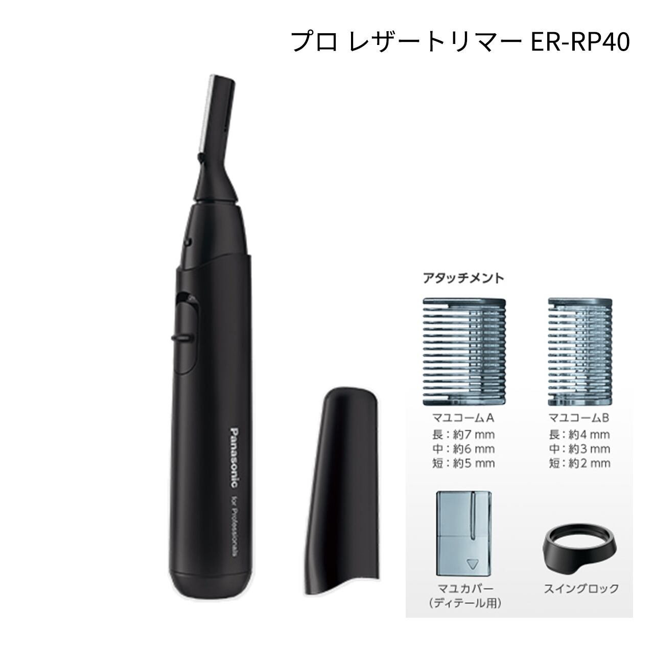 付属品・セット内容:マユコーム×2(刈高2~4mm/5~7mm)、マユカバー、スイングロック、掃除用ブラシ